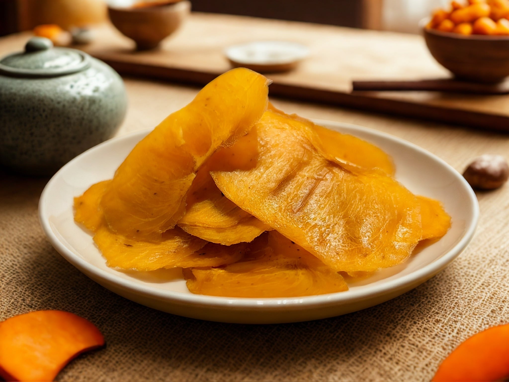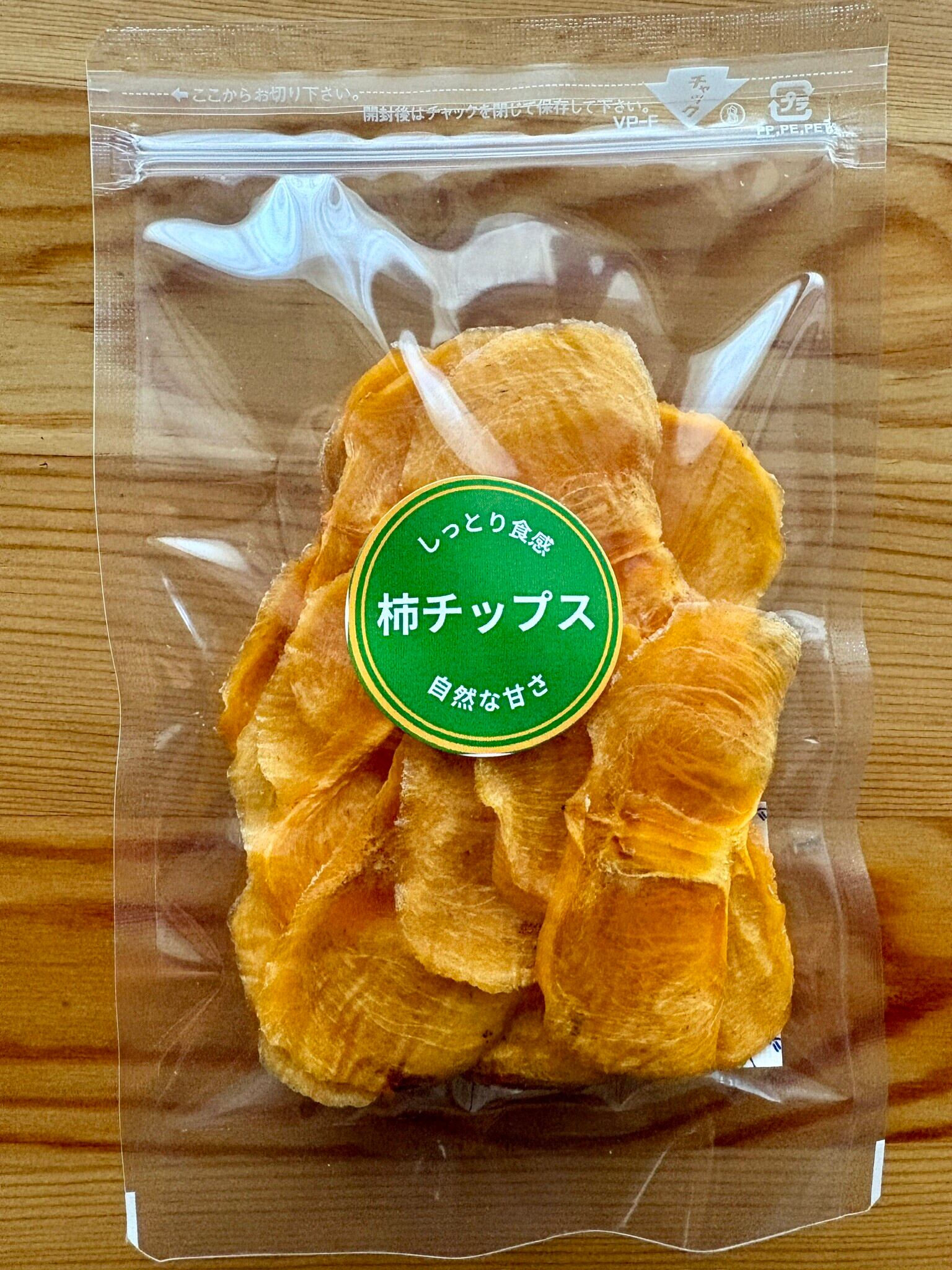 そのため、パリッとしたチップスではなく、干し柿のようにやわらかくしっとりとした食感が特徴です。